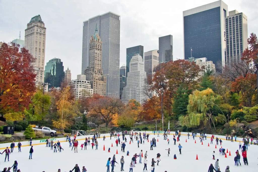 Später im November verwandelt sich New York in eine Winterstadt. Zwei Märkte sind besonders beliebt: der Union Square Holiday Market und das Bryant Park Winter Village. Im Bryant Park steht eine Eislaufbahn zwischen hohen Gebäuden. Auch am Rockefeller Center gibt es früh im Monat eine Bahn, meist schon vor der offiziellen Baumbeleuchtung. Das ist eine gute Gelegenheit, dort noch ohne große Menschenmengen zu fahren.